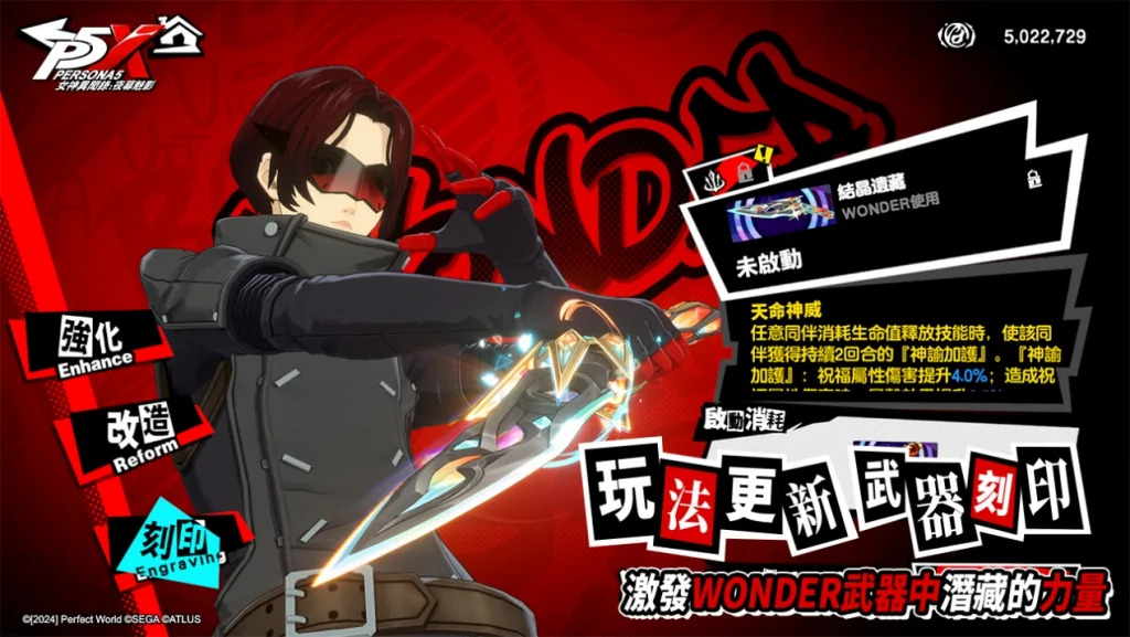 圖說:為WONDER的武器烙上刻印吧!全新武器刻印系統是為主角WONDER所打造的養成系統,可啟動新的武器技能效果。