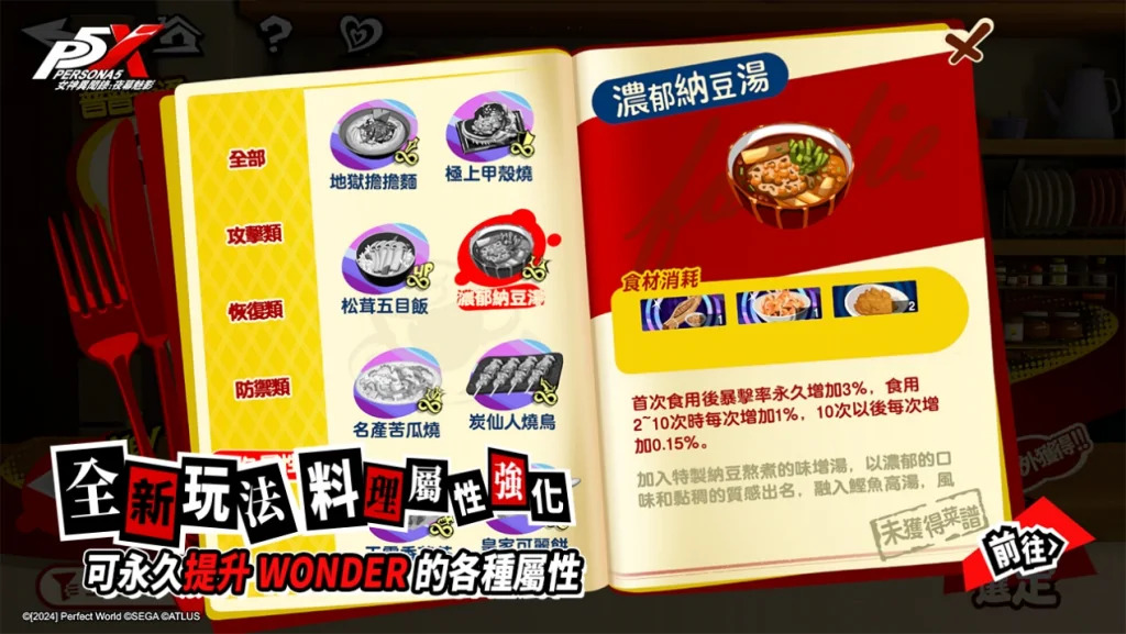 圖說:全新版本也將新增八種永久屬性類烹煮料理,食用後可永久提升WONDER的各種屬性。